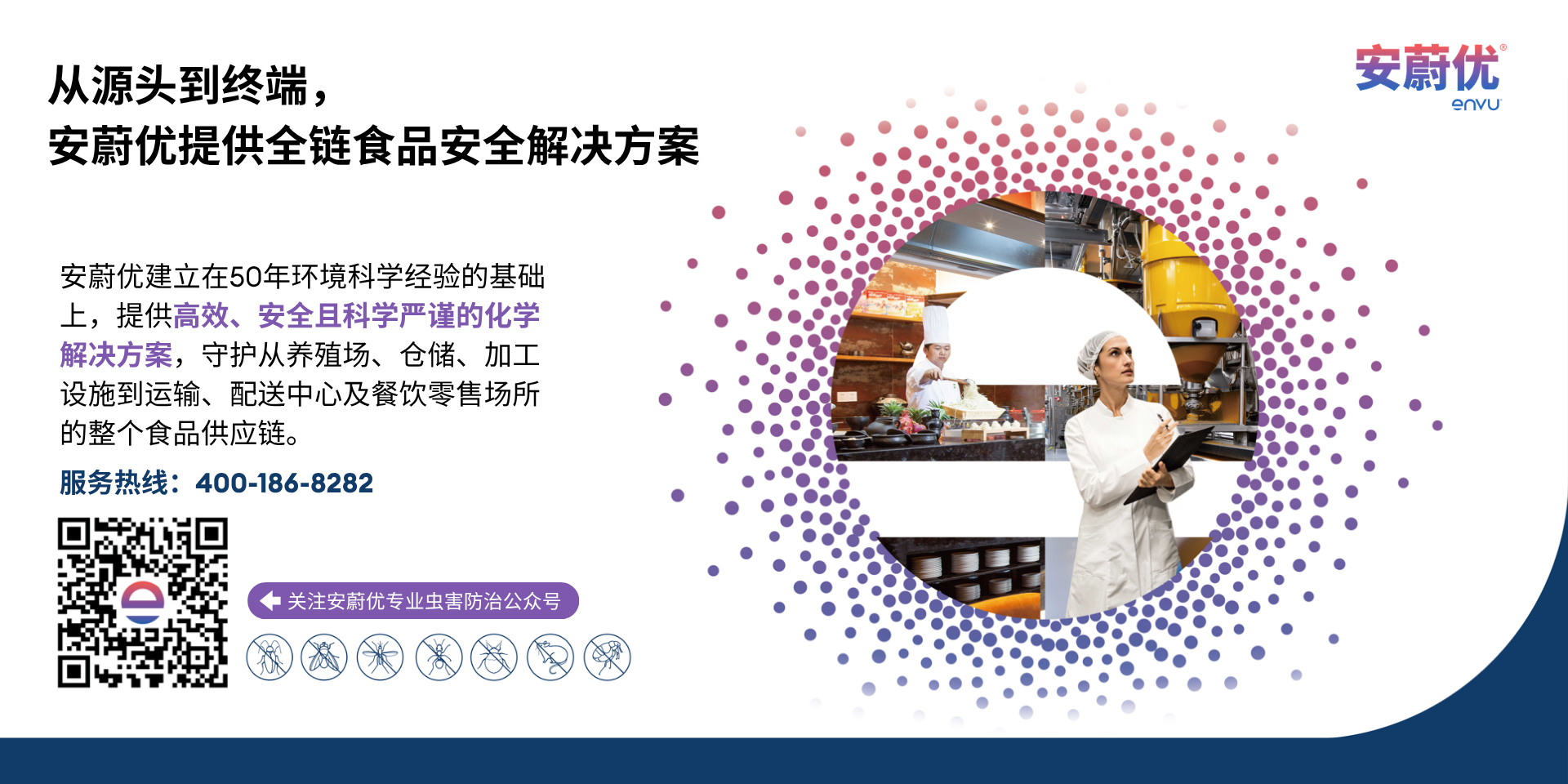 Food safety requires a comprehensive, science-based approach. Envu provides efficient, safe and scientifically robust chemical solutions that safeguard the food supply chain — from agricultural storage and processing facilities to transportation, distribution centers and retail food service environments. Our portfolio helps customers manage pest-related risks, maintain hygiene standards and protect the integrity of the products that reach consumers' tables.